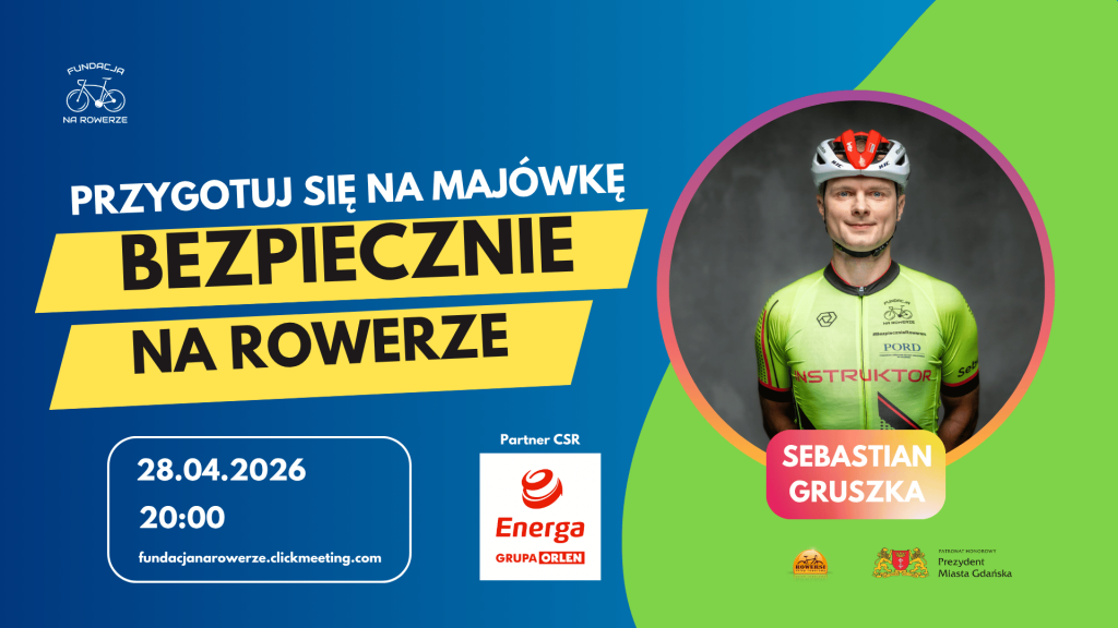 Zapraszam Cię na bezpłatny webinar: „Bezpiecznie na majówkę: Bezpieczeństwo i przepisy ruchu drogowego dla rowerzystów”. Spotykamy się we wtorek, 28 kwietnia o godzinie 20:00. Przez 60 minut zajmiemy się konkretami, które realnie wpływają na Twój komfort i bezpieczeństwo. Nie będę czytał kodeksu paragraf po paragrafie lecz pokażę Ci, jak te zasady działają w praktyce.